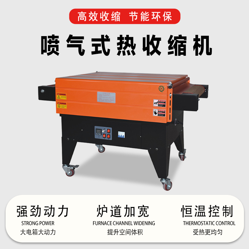 - 噴氣式熱收縮機是一種利用熱空氣噴射技術對産品進行熱收縮包裝的設備。其基本原理是通過加熱裝置将空氣加熱到一定溫度,然後利用噴氣裝置将熱空氣均勻地噴射到包裹在産品表面的熱收縮薄膜上。熱收縮薄膜在熱空氣的作用下,分子鏈段開始運動,薄膜發生收縮,從而緊密地貼合在産品的外形輪廓上,達到包裝的目的。